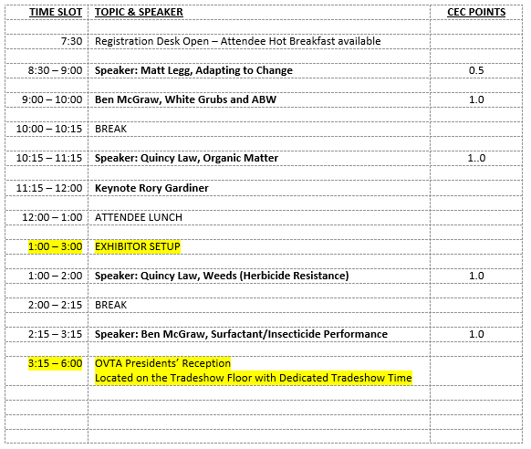 Thank you for supporting the Ottawa Valley Turfgrass Association. Your presence at our tradeshow is very much appreciated.